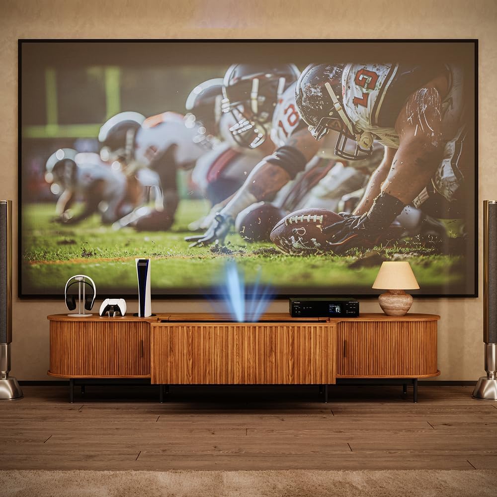 The 86″ Ultra Short Throw Projector TV Stand combines intelligent design with timeless mid-century modern style. Crafted in a rich walnut finish, this electric cabinet brings innovation and beauty into your living space. With its automatic linkage memory function, ample storage space, and sleek design, it transforms any room into a modern entertainment hub.