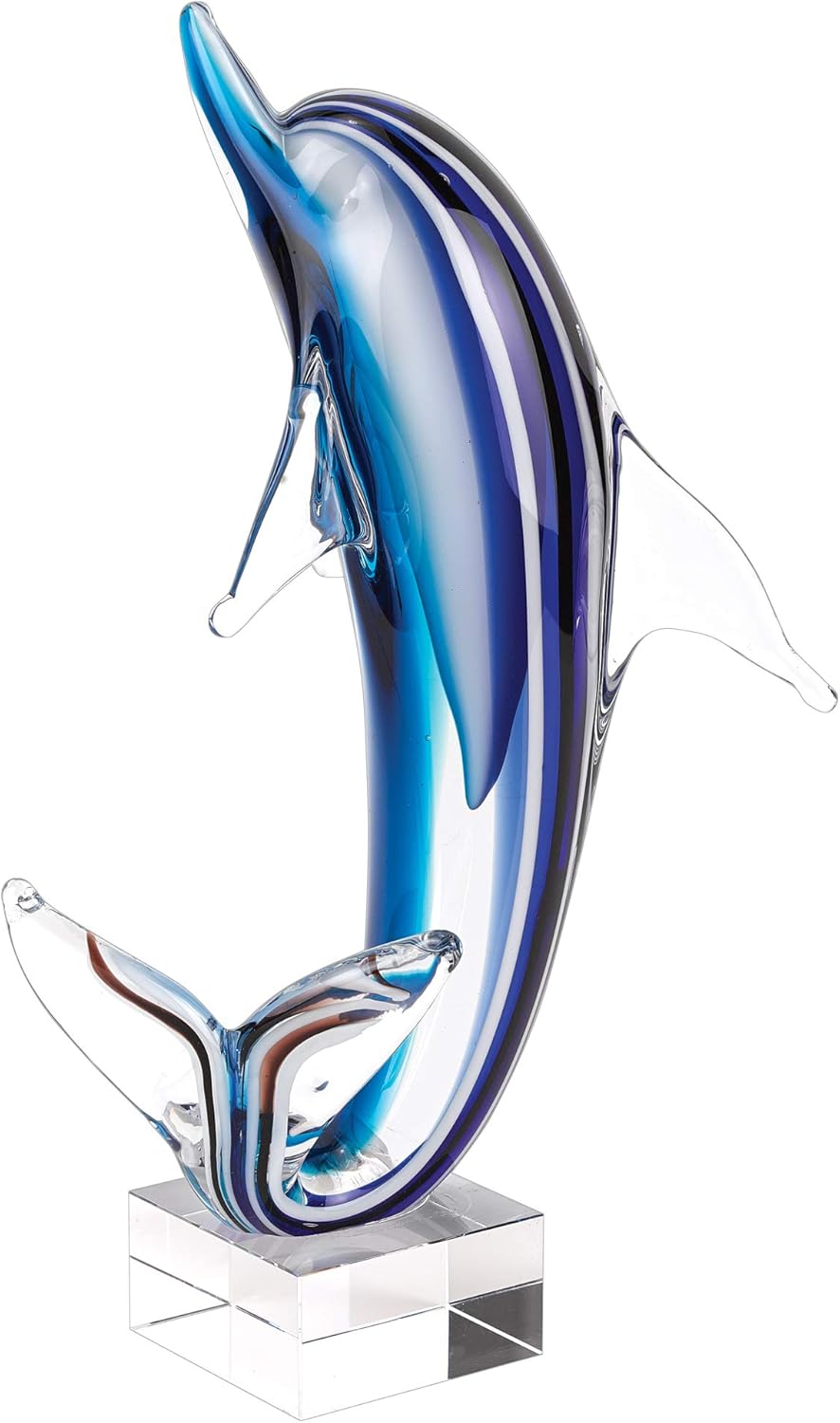Bring vibrant beauty and coastal elegance into your space with the Murano-Style Glass Dolphin Figurine. This striking 14-inch sculpture captures the flowing motion of a dolphin leaping through water, blending color, artistry, and symbolism in one unforgettable piece. Because it is crafted using traditional mouth-blown glass techniques, each figurine feels unique and full of character. Its rich colors and graceful shape make it a standout display for beach houses, summer homes, offices, or any room that needs a touch of coastal magic.