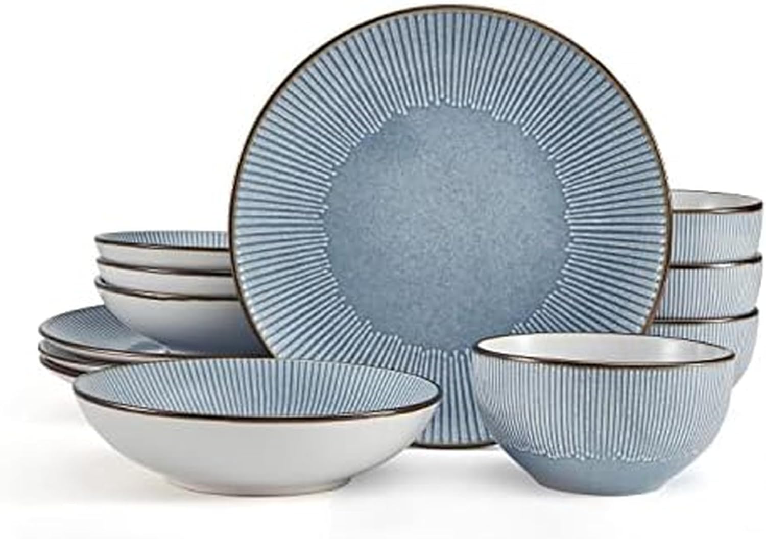 The Pfaltzgraff Arlie Blue 12-Piece Stoneware Dinnerware Set brings contemporary sophistication to your dining table. Its rich blue hue instantly brightens your space, creating a vibrant backdrop for every meal. Each piece features an embossed pattern accented with a metallic rim, striking the perfect balance between rustic texture and modern shine. Whether you’re serving casual dinners or hosting guests, Arlie Blue turns every occasion into a stylish dining experience.