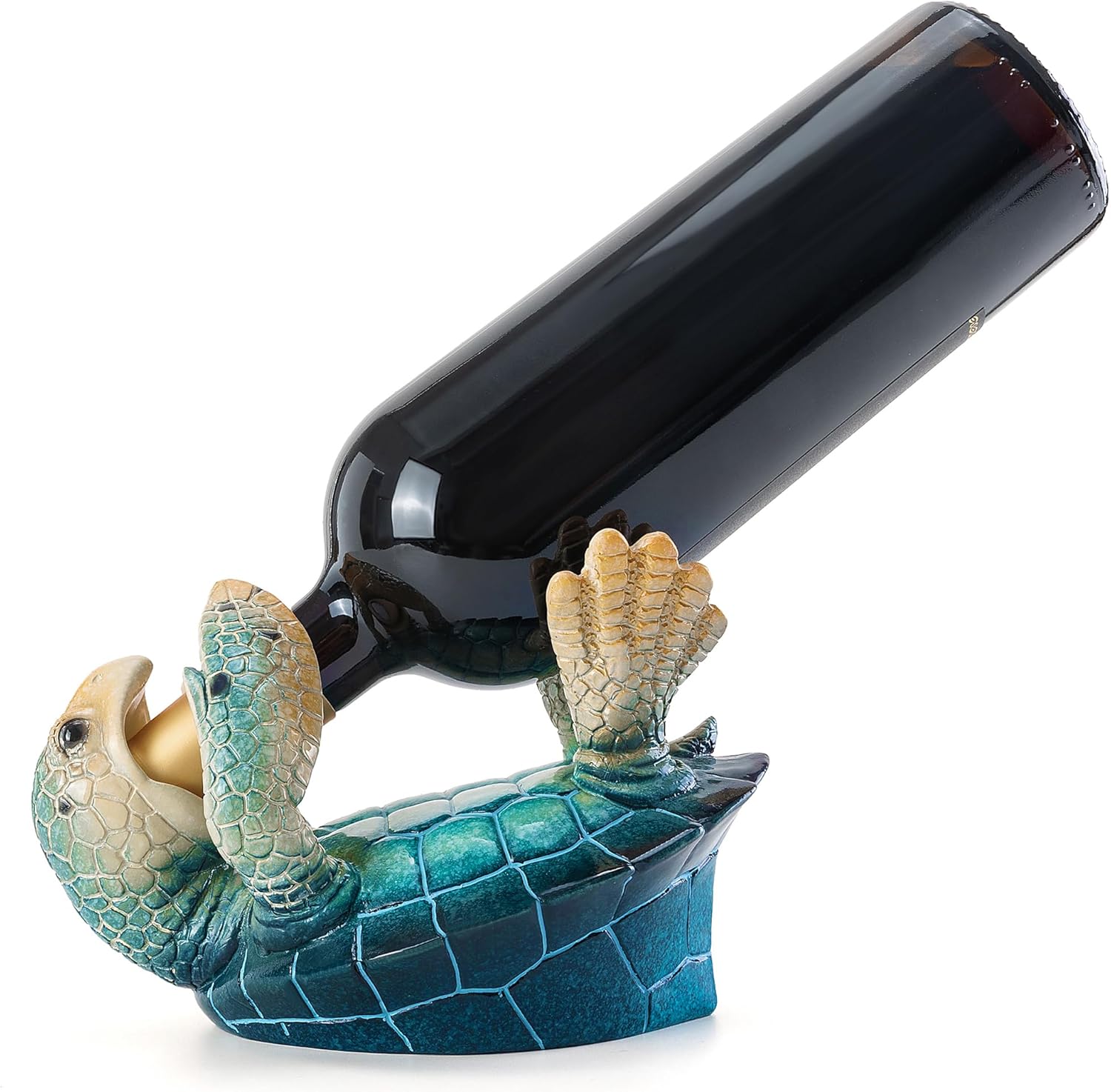 While decorative, the Sea Turtle Wine Bottle Holder Statue serves a practical purpose. The turtle’s pose is designed to securely cradle a standard wine bottle. The balanced shape keeps the bottle steady, making it ideal for serving guests or showcasing your favorite blend. You can use it in your dining room, bar cart, lounge, or home office for a unique coastal twist.